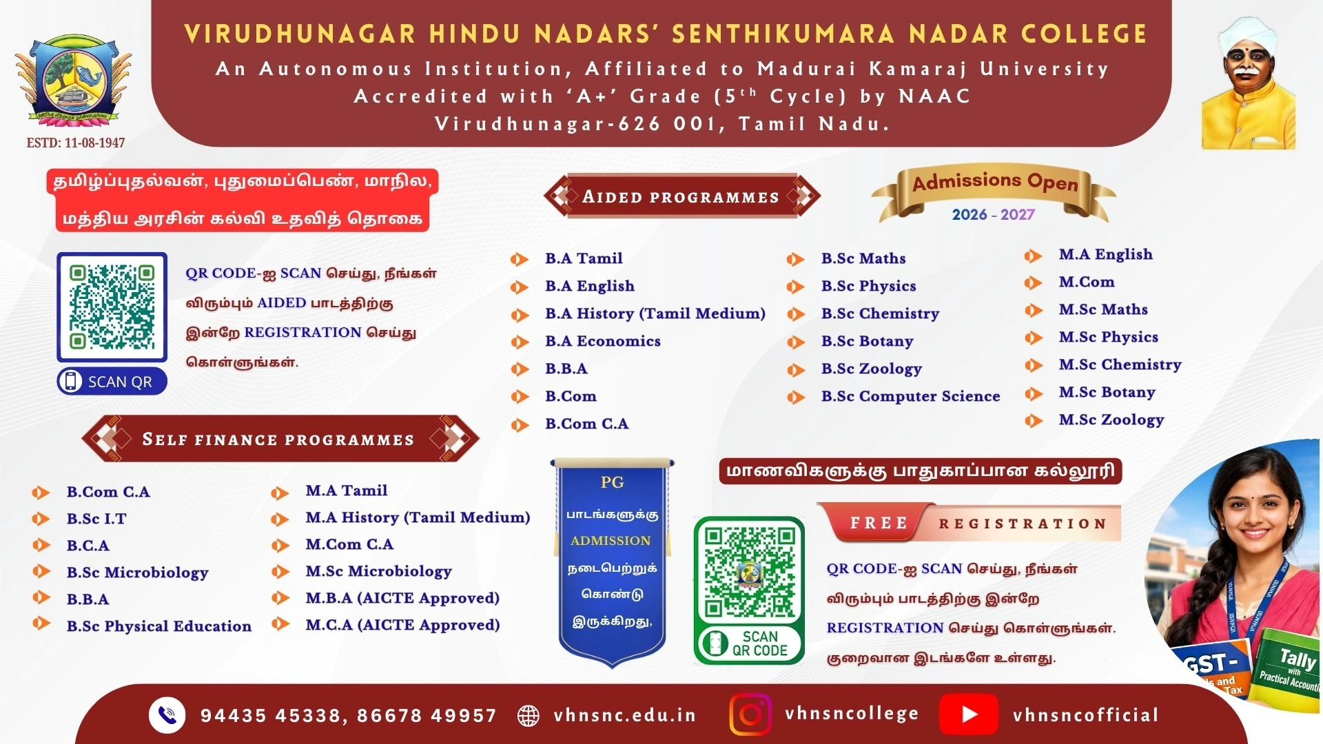 2026–2027 கல்வியாண்டிற்கான UG மற்றும் PG பாடப்பிரிவிற்கு Admission நடைபெறுகிறது.