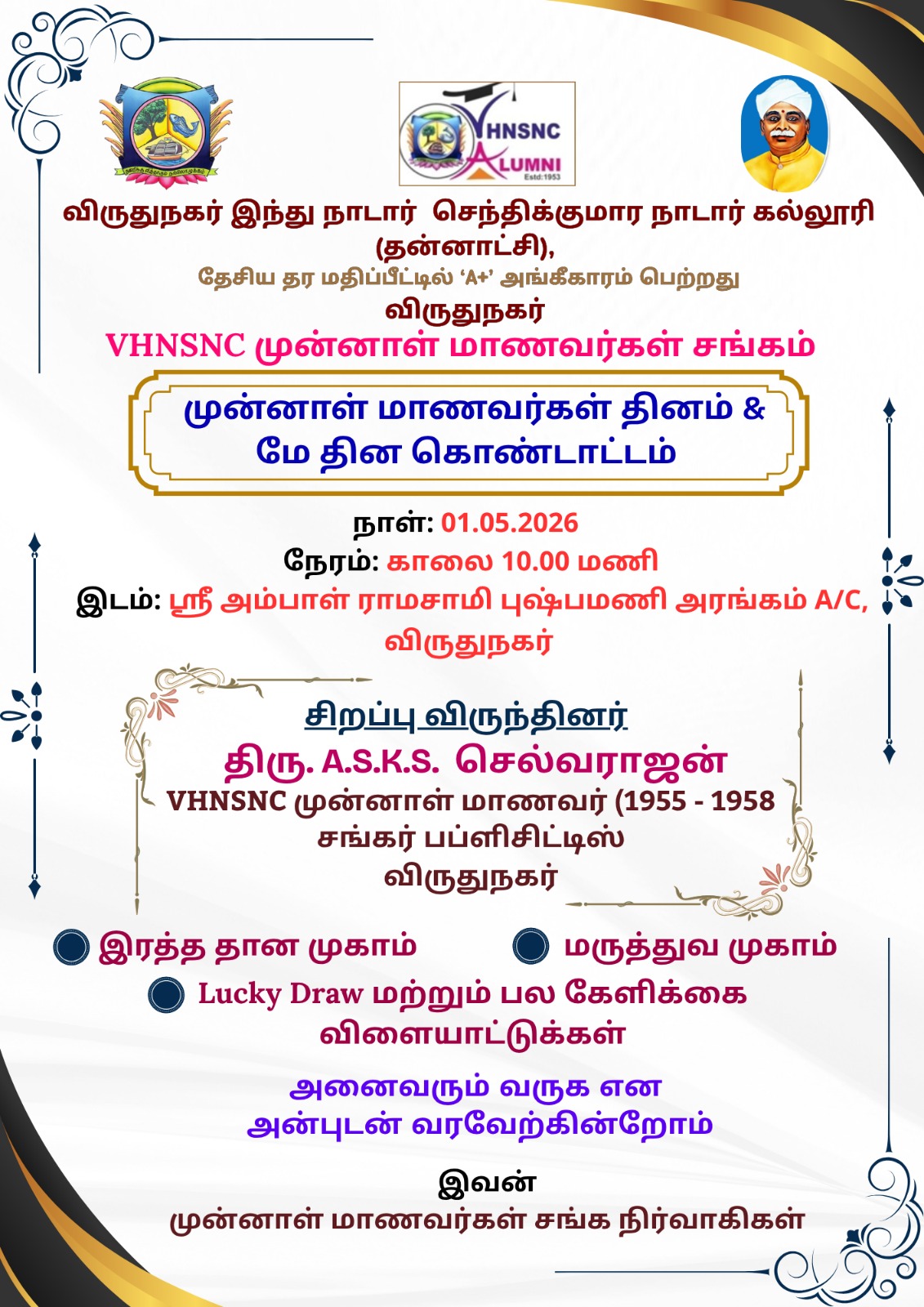 Our College Alumni Association Organizes Join Our Lucky Draw & Fun - Filled Games on 01.05.2026.