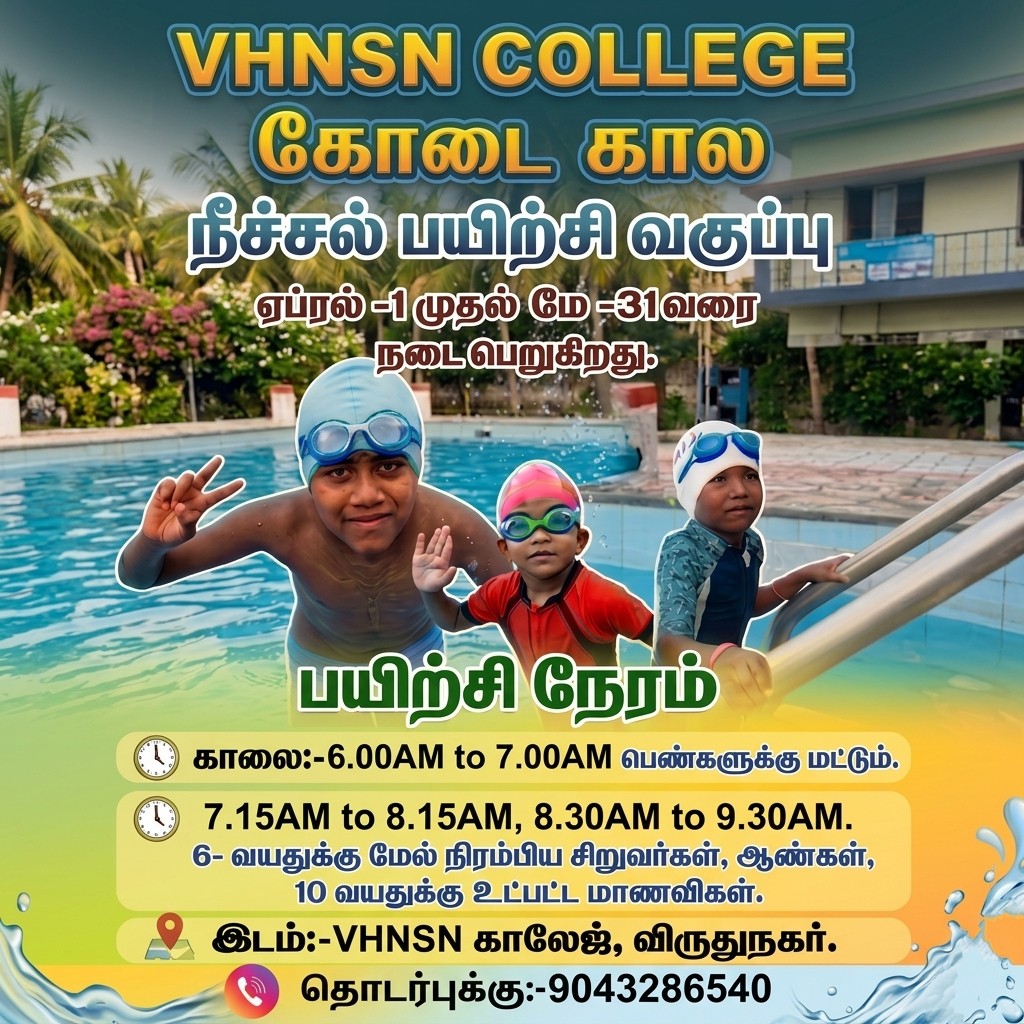 VHNSN COLLEGE - கோடைக்கால நீச்சல் பயிற்சி வகுப்பு.