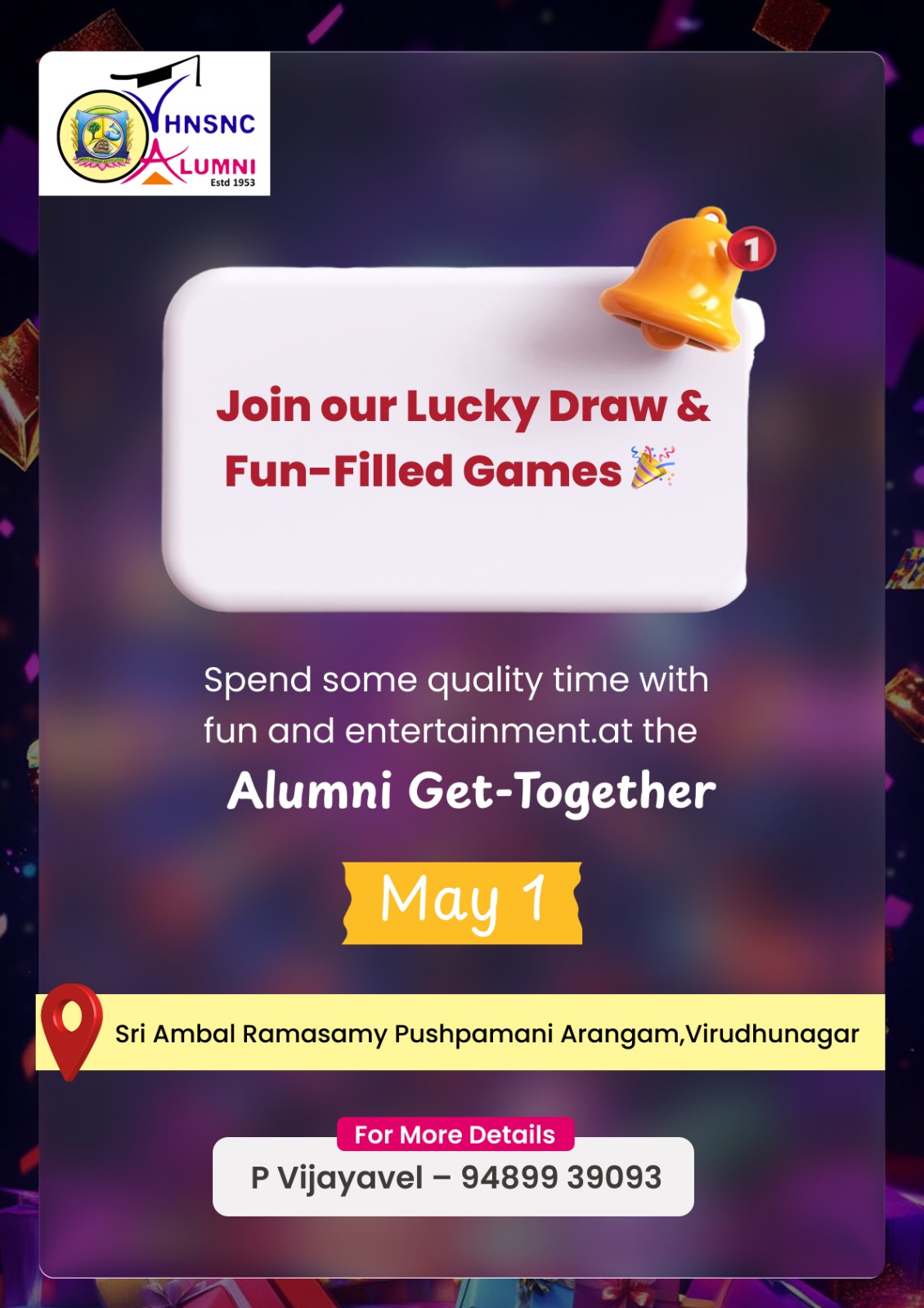 Our College Alumni Association Organizes Join Our Lucky Draw & Fun - Filled Games on 01.05.2026.